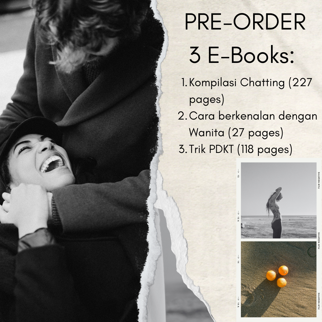 E-Books dengan berisikan: - Kompilasi Chatting (227 Pages) - Cara berkenalan dengan Wanita (27 Pages) - Trik PDKT (118 Pages)
