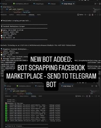 Otomatisasi dalam scrapping/ambil data dari Marketplace Facebook berdasarkan: - ✅Nama️ Pencarian - ✅️Lokasi - ✅️Custom jumlah scrapping datanya - ✅️Waktu (Newest/Oldest/Random) - ✅️Timer, bisa custom otomatis mau scrapping Reel Video: https://www.facebook.com/reel/1180205374245261